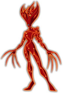 Perhaps a better scenario -- if we must keep the "jet of flame" -- would be to have Serling holding something flammable (or "char"-able) which could be set on fire/charred/melted by the "jet of flame".
